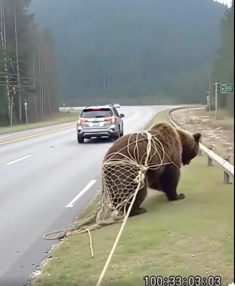 As the final stubborn threads of the net slipped away from the bear’s massive paws, it took a hesitant step backward, vigorously shaking its powerful