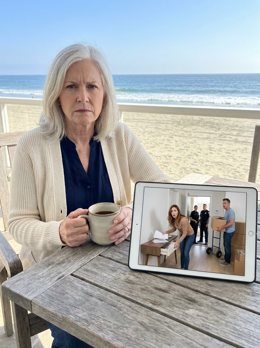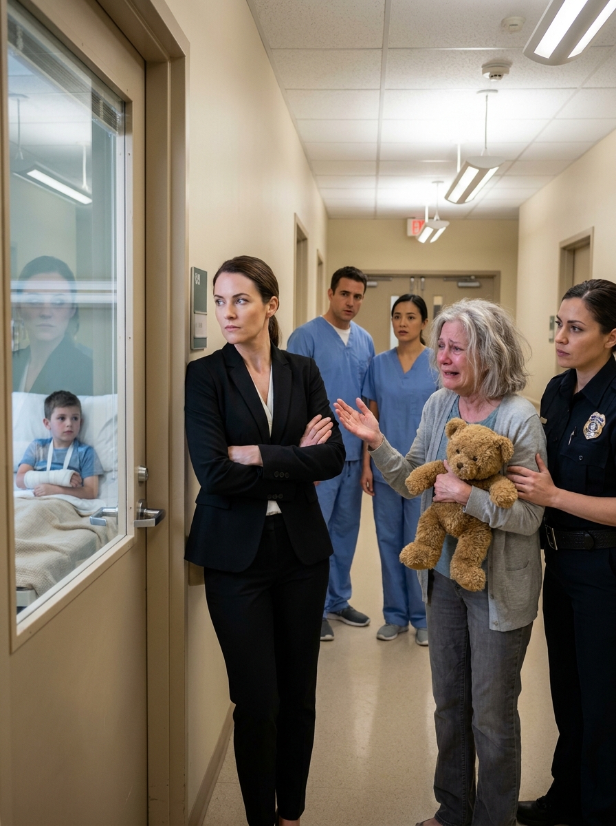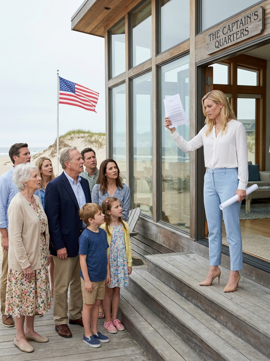 Eight-year-old Lily Carter stood trembling at the checkout counter, rainwater dripping from the hem of her thin dress onto the polished floor. She was barefoot. Cold. Covered